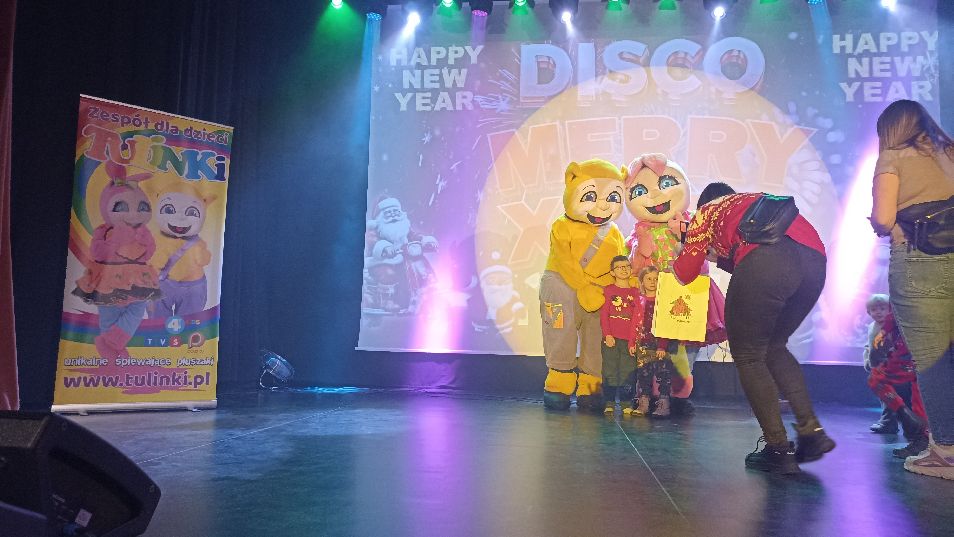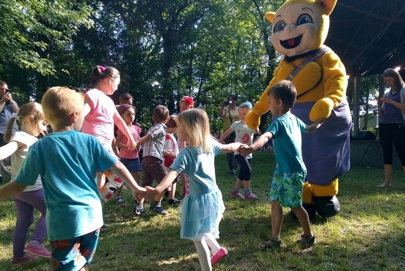 Program artystyczny odbywa się na scenie oraz przed sceną, tak aby można zaprosić do wspólnej zabawy wszystkie dzieci z rodzicami.