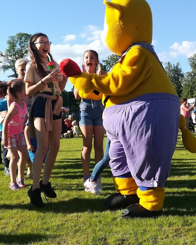 Koncert zespołu Tulinki, zabawa z dziećmi na scenie, nauka tańca, konkursy dla najmłodszych i ich rodziców, wspólne pozowanie do zdjęć.